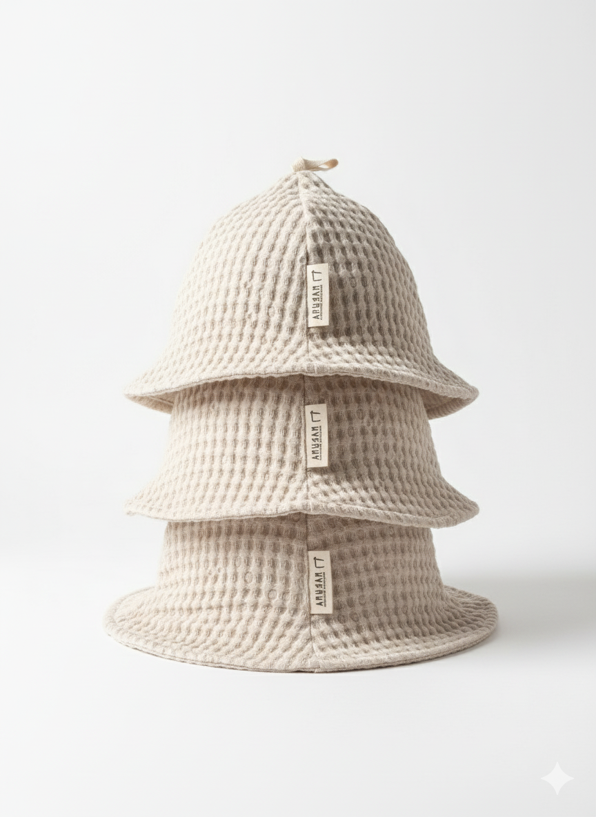 Funkcjonalna i stylowa czapeczka do sauny wykonana z naturalnej mieszanki 50% bawełny i 50% lnu o charakterystycznej, wafelkowej strukturze. Dzięki połączeniu dwóch włókien czapeczka jest jednocześnie miękka, oddychająca i wyjątkowo trwała. Chroni głowę i włosy przed nadmiernym nagrzaniem w saunie, zwiększając komfort i bezpieczeństwo podczas korzystania z gorących seansów.