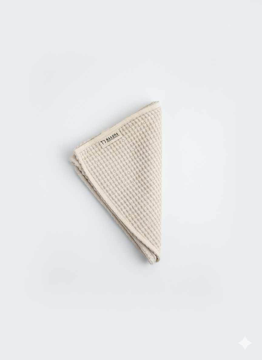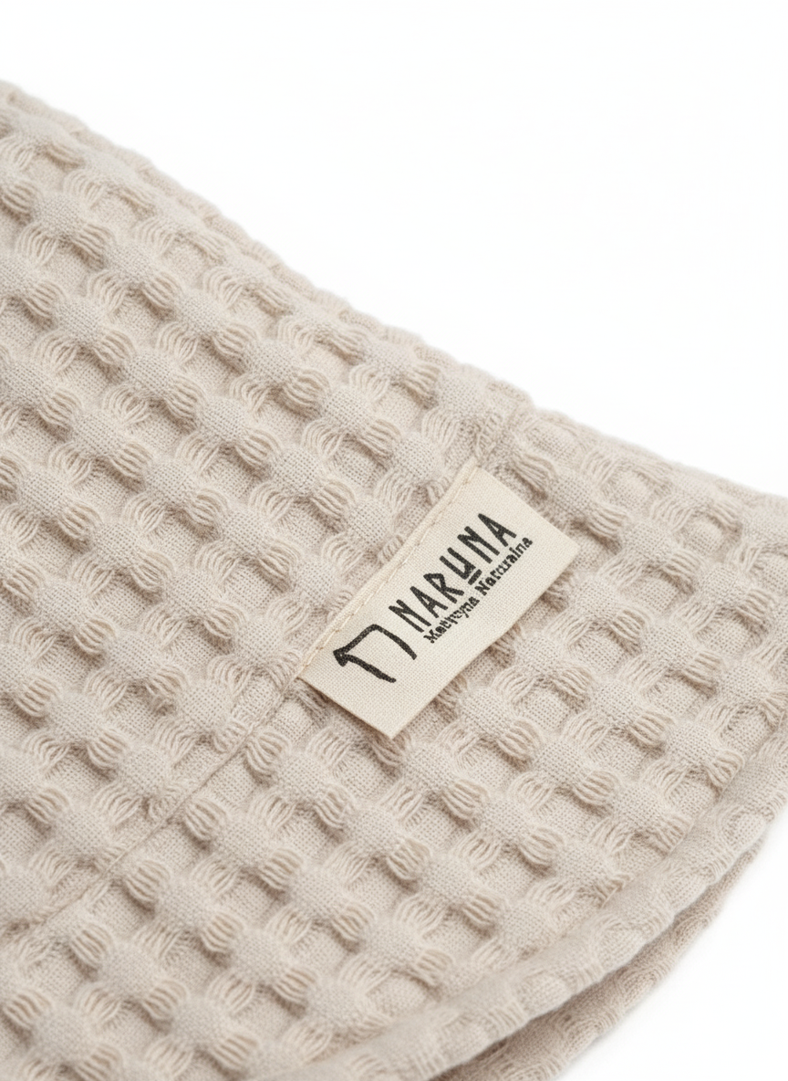 - Wafelkowa faktura – lekki i ciekawa struktura schnie szybciej niż klasyczna frotte.
