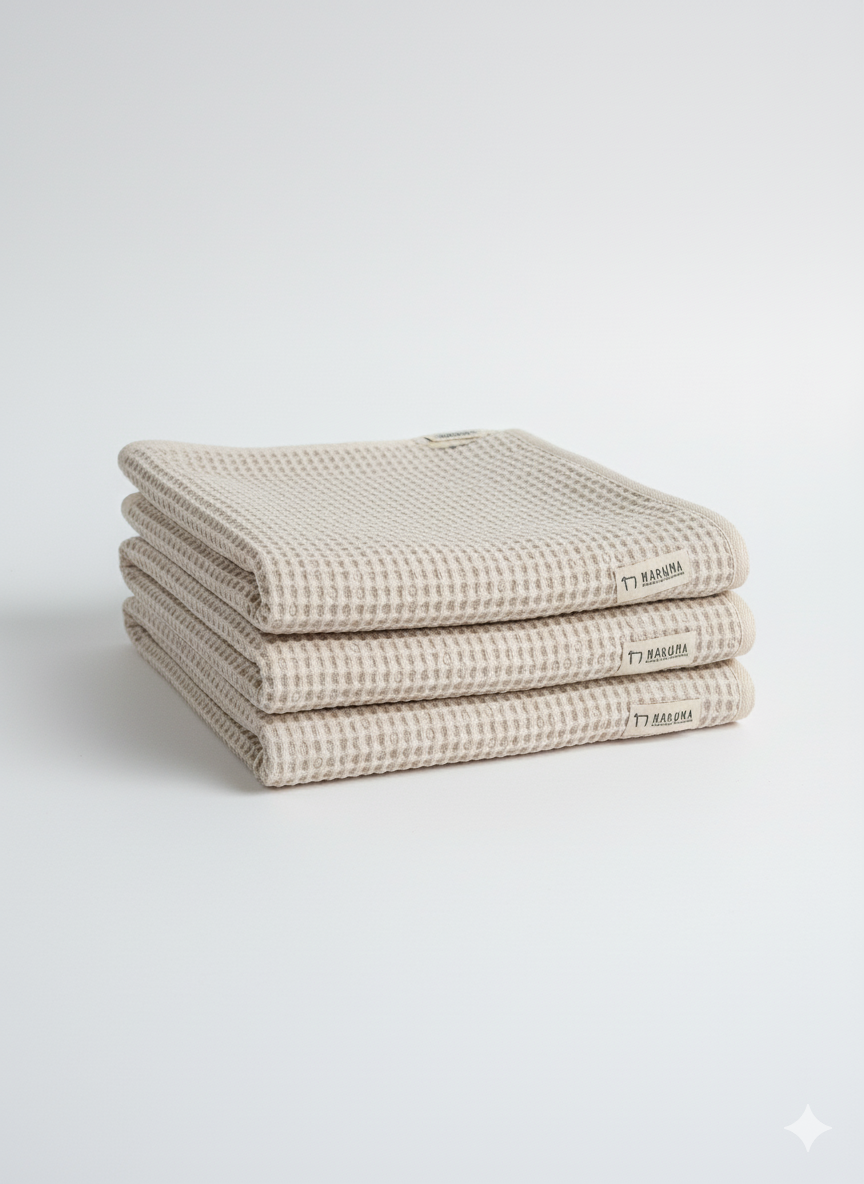 Stylowy i funkcjonalny ręcznik wykonany w całości z naturalnej bawełny o charakterystycznej, wafelkowej strukturze. To idealny wybór dla osób ceniących komfort i naturalne materiały.